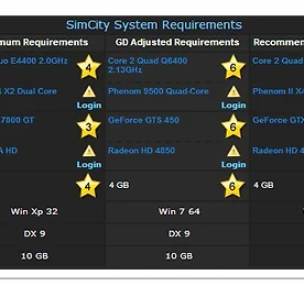 심시티5 사양 썸네일형 리스트형 심시티5 사양 (요구스펙) 알아보기, PC 성능이 충분한지 점수까지 심시티5 사양 비교표 시뮬레이션 게임의 고전 심시티5가 출시 되었습니다. 전작에비해 보다 화려한 그래픽과 인공지능으로 무장하고 나타나서 마음까지 설레이게 만들었는데요. 지금 내가 가지고 있는 PC스펙으로 충분히 구동이 가능한지 궁금합니다. 그래서 심시티5 요구 사양을 찾아보던 중 괜찮은 사이트가 있어서 소개 해 봅니다. 위 그림을 보면 기존 최저요구 스펙(사양) 부터 추천하는 스펙까지 나와 있는데 의외로 그렇게 고성능이어야 하는것은 아닌듯 합니다. 위표에서 보면 추천하는 스펙은 CPU : 인텔기준 Core2 Quad Q9300 2.5Ghz, AMD 기준 페놈X4 910 GPU(그래픽) Nvidia 기준 GTX 275, 라데온 기준 4890 메모리는 4GB 입니다. 자신의 PC의 간접 비교가 어렵다면 해당.. 더보기 이전 1 다음
